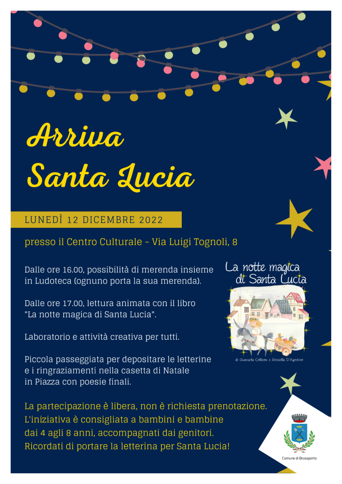 Ritornano a Brusaporto gli eventi dedicati alla Santa più amata e desiderata dai bambini! Appuntamento per lunedì 12 dicembre presso il Centro Culturale.