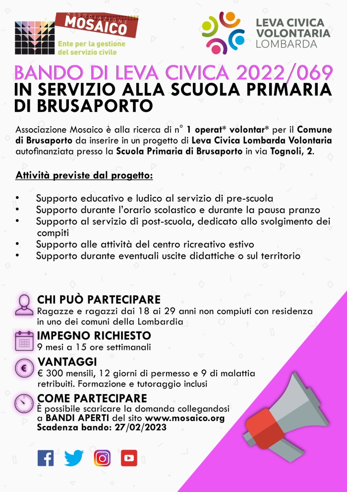 Scopri il nuovo bando di leva civica del Comune di Brusaporto.