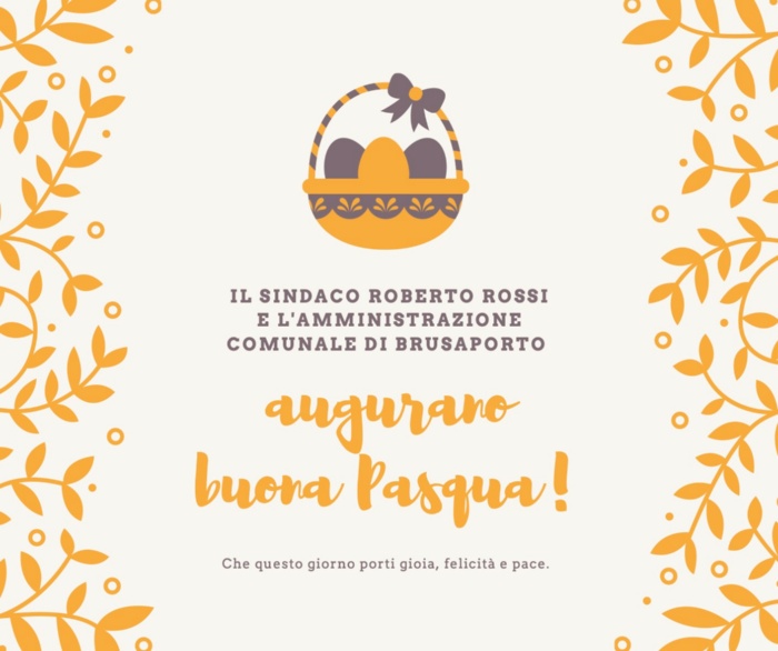 Il Sindaco Roberto Rossi e l'Amministrazione Comunale di Brusaporto augurano buona Pasqua! Che questo giorni porti gioia, felicità e pace.