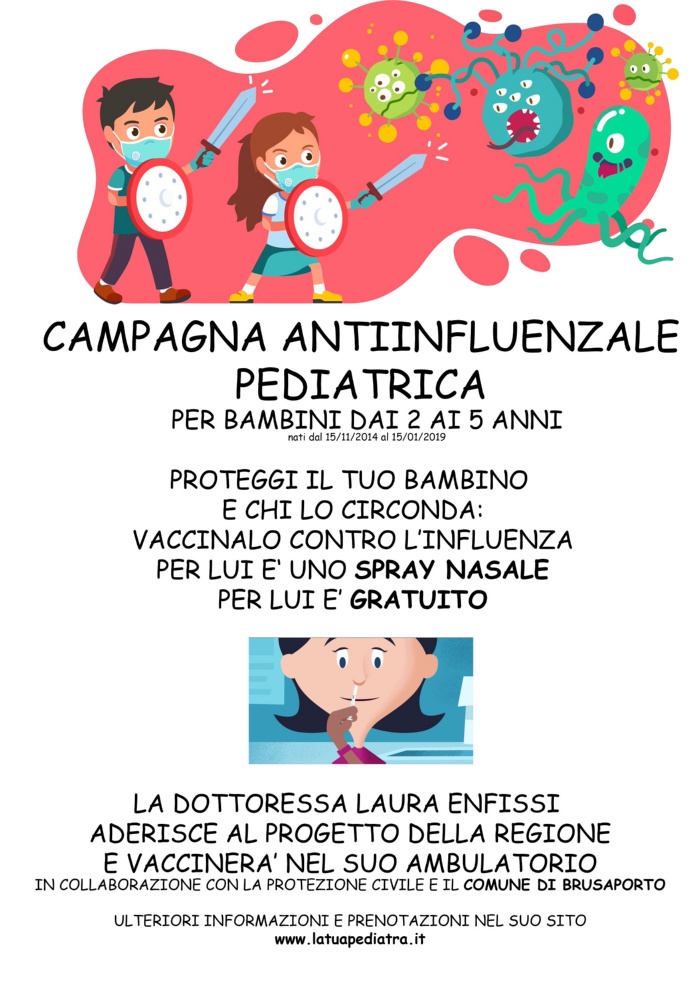 Lunedì 30 novembre inizierà la campagna vaccinale antinfluenzale pediatrica. Per informazioni, è possibile contattare la dott.ssa Laura Enfissi. Il vaccino presso la dott.ssa Enfissi è solo per i pazienti registrati con la dottoressa.
