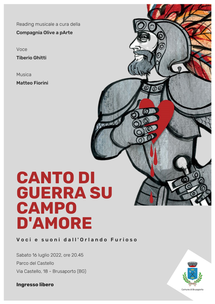 Torna la Compagnia "Olive a pArte" con voci e suoni dall'Orlando Furioso. Appuntamento per sabato 16 luglio alle ore 20.45 al Parco del Castello. Ingresso libero.