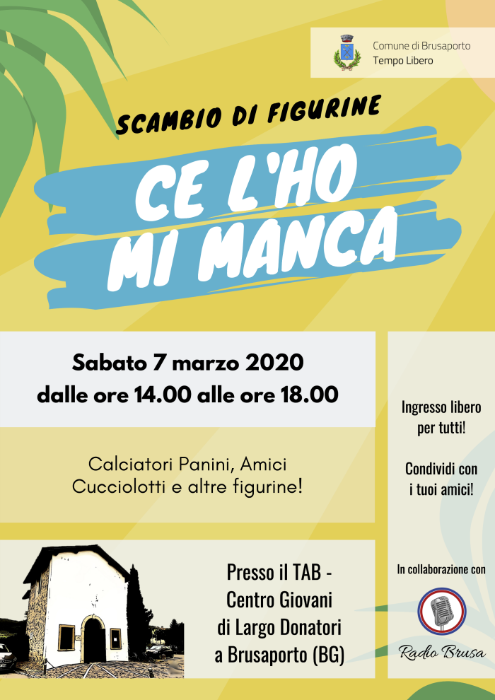 Appassionati collezionisti, segnatevi l'appuntamento: sabato 7 marzo dalle ore 14.00 alle ore 18.00 presso il TAB - Centro Giovani.