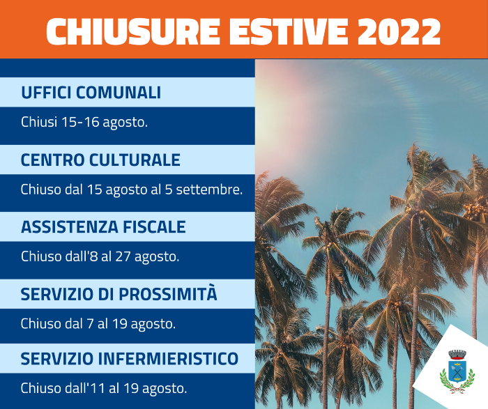 Guarda in allegato le chiusure dei servizi comunali nel periodo estivo.
