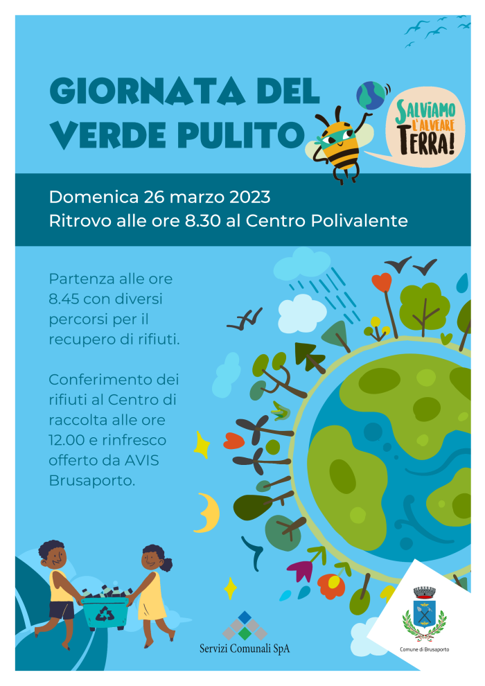 Ritorna la Giornata del Verde Pulito, diamo un aiuto al nostro ambiente! L'appuntamento è per domenica 26 marzo 2023 con ritrovo alle ore 8.30 al Centro Polivalente.