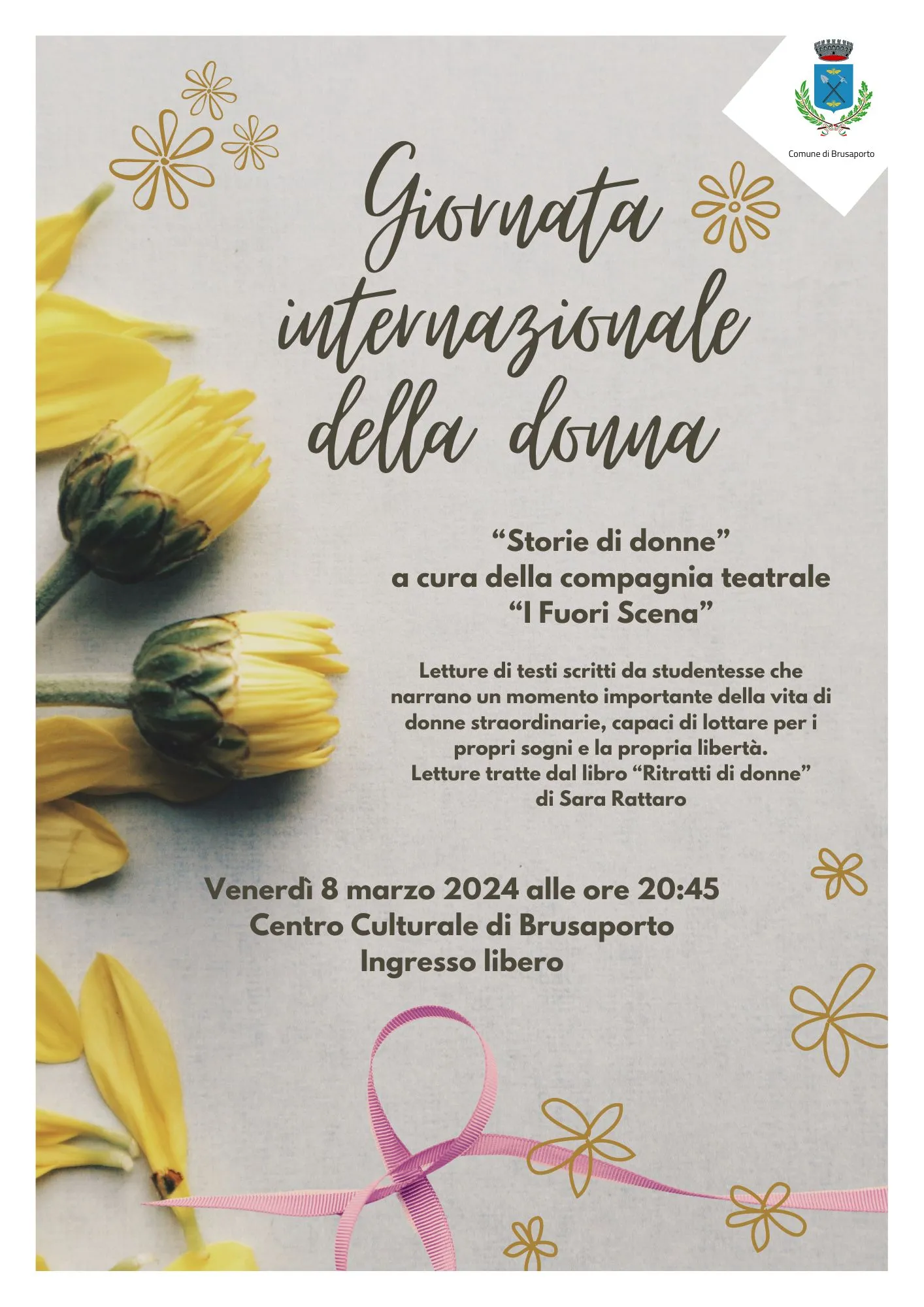 Il Comune di Brusaporto celebra la Giornata internazionale della donna con la lettura “Storie di donne”, tratte dal libro “Ritratti di donne” di Sara Rattaro, a cura della compagnia teatrale “I Fuori Scena”.
