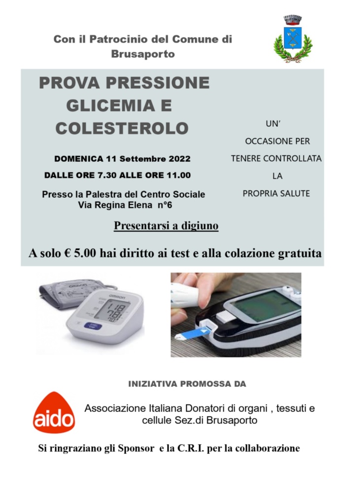 Il Gruppo AIDO di Brusaporto organizza la "Giornata sanitaria": domenica 11 settembre dalle ore 7.30 alle ore 11.00 presso il Centro Sociale.