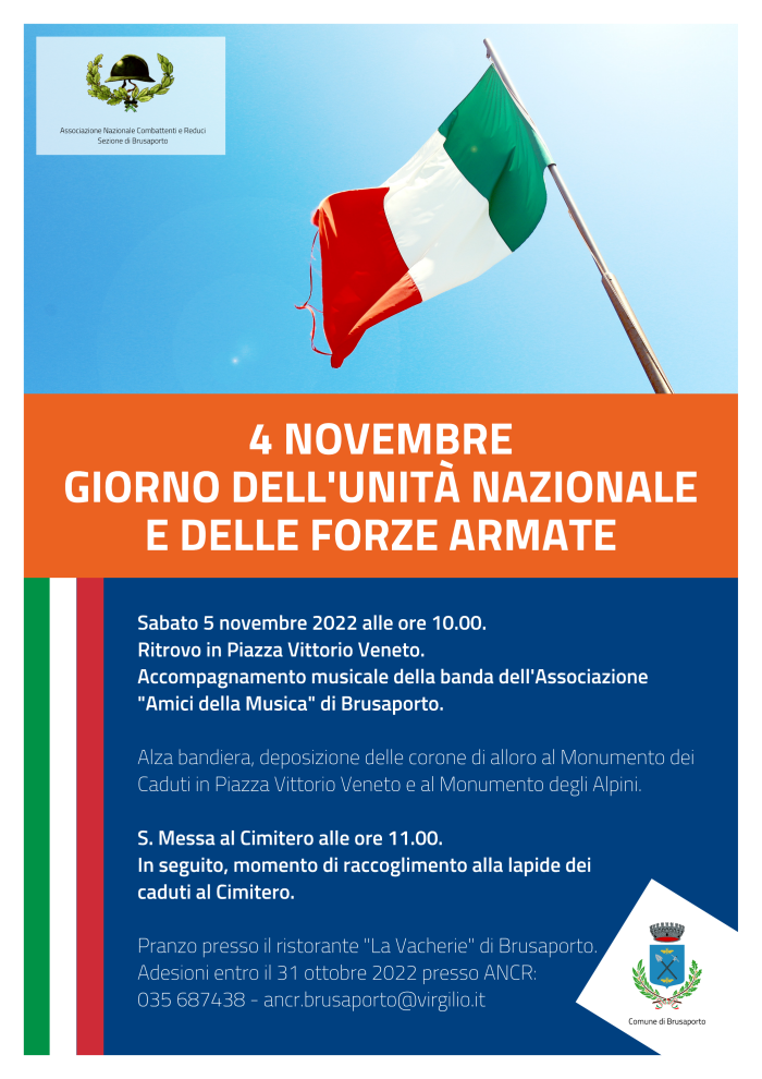 Celebriamo il 4 novembre, Giorno dell'Unità Nazionale e delle Forze Armate.