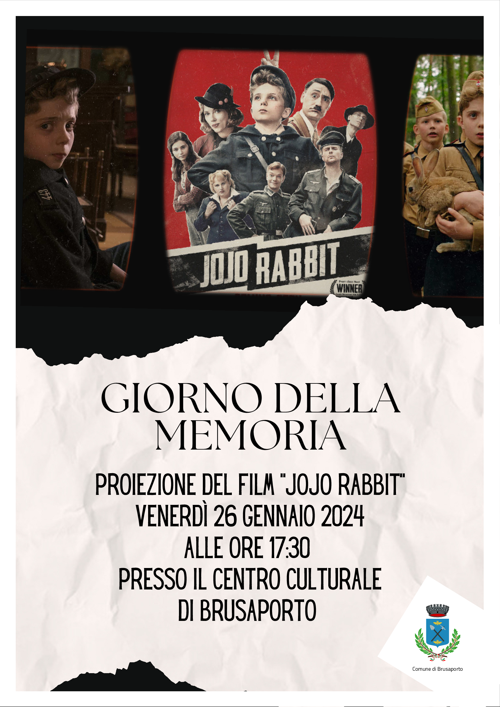 In occasione del Giorno della Memoria, ricorrenza internazionale celebrata il 27 gennaio di ogni anno come giornata per commemorare le vittime dell'Olocausto, il Comune di Brusaporto organizza la proiezione del film "Jojo Rabbit".