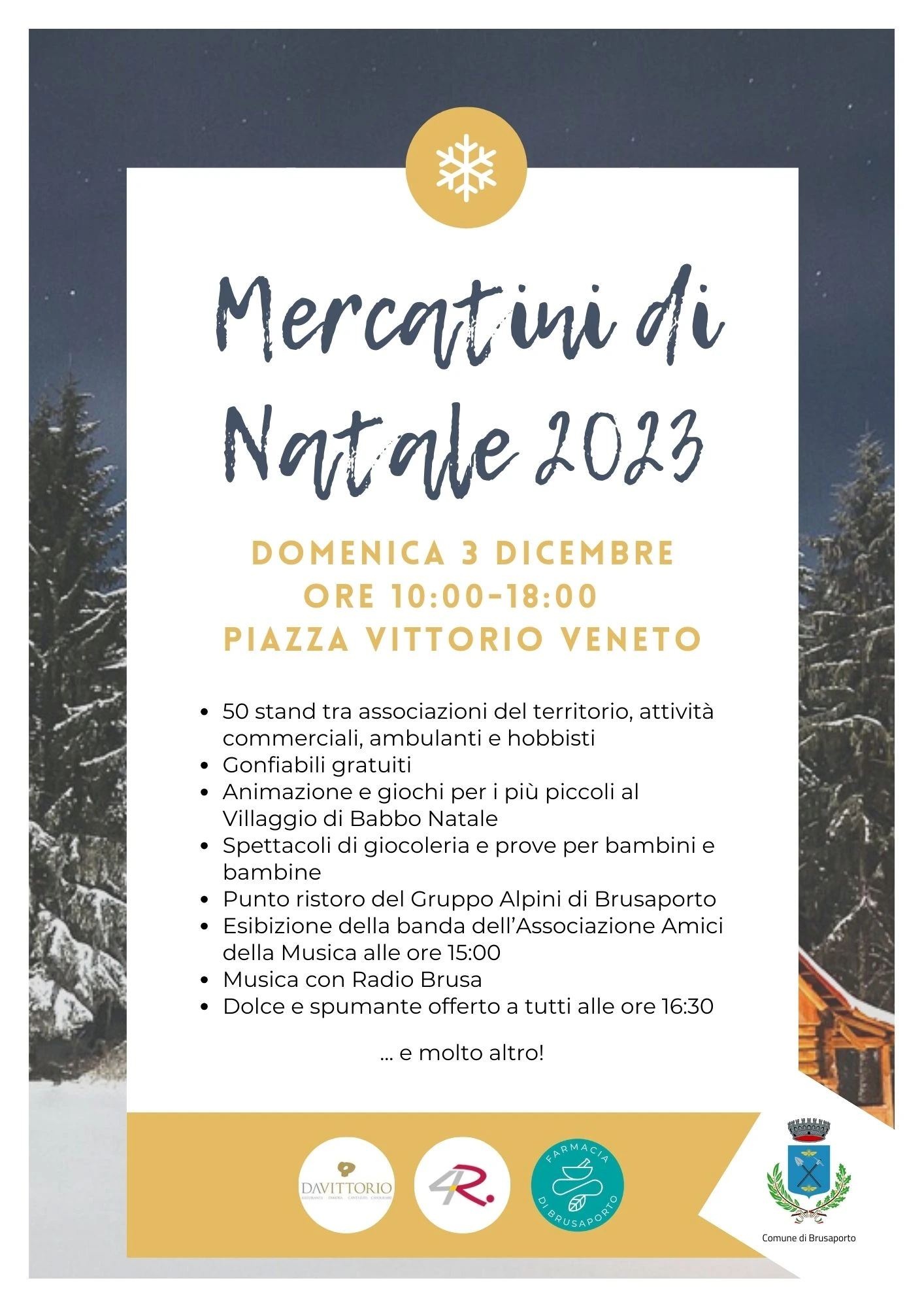 Ritornano anche quest'anno gli attesissimi Mercatini di Natale di Brusaporto! Appuntamento per domenica 3 dicembre 2023 dalle ore 10:00 alle ore 18:00 in Piazza Vittorio Veneto.