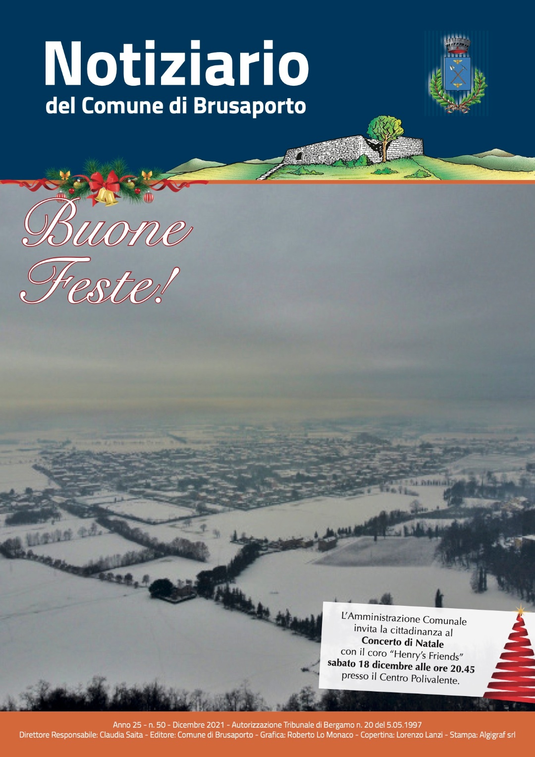 È in consegna in questi giorni presso tutte le abitazioni di Brusaporto il Notiziario del mese di dicembre 2021. Una raccolta tutte le notizie, gli approfondimenti e le fotografie da aprile ad oggi, con spunti interessanti sul futuro del nostro paese. In allegato, il calendario 2022 per la raccolta differenziata dei rifiuti.