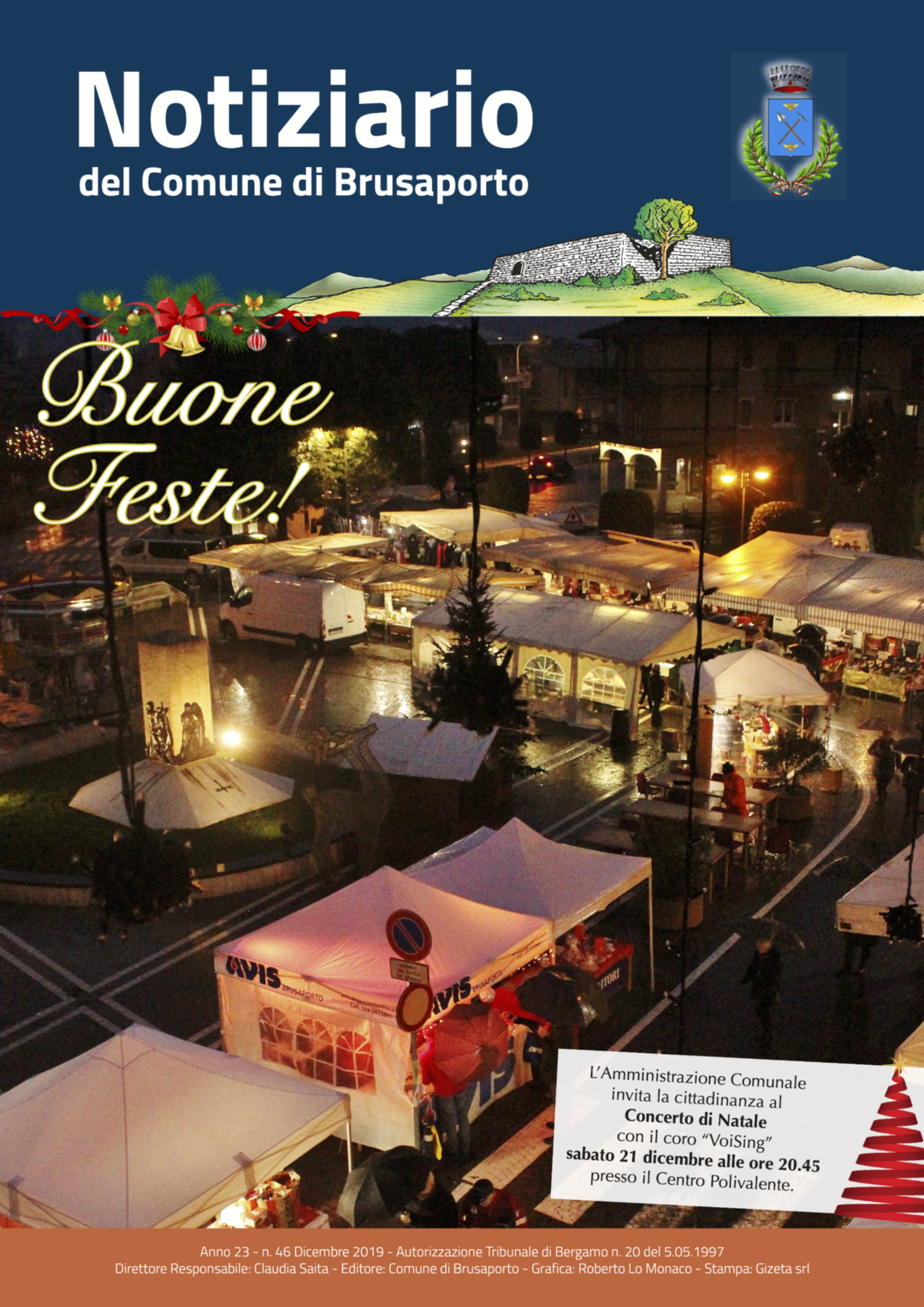 In allegato, si trovano anche la nuova brochure degli eventi da gennaio ad aprile 2020 e il calendario per la raccolta differenziata porta a porta del nuovo anno.