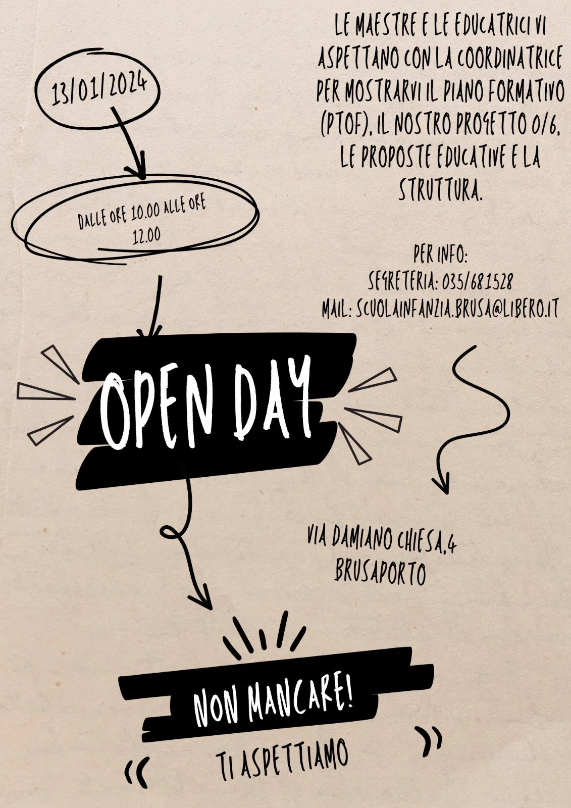 La Scuola dell'infanzia parrocchiale di Brusaporto "Divina Provvidenza" organizza un open day per incontrare il personale e mostrare il piano formativo della scuola.