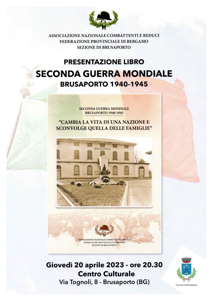 Giovedì 20 aprile alle ore 20.30 presso il Centro Culturale l'Associazione Nazionale Combattenti e Reduci - sezione di Brusaporto presenterà il libro dedicato alla Seconda Guerra Mondiale, con uno sguardo rivolto al nostro paese.