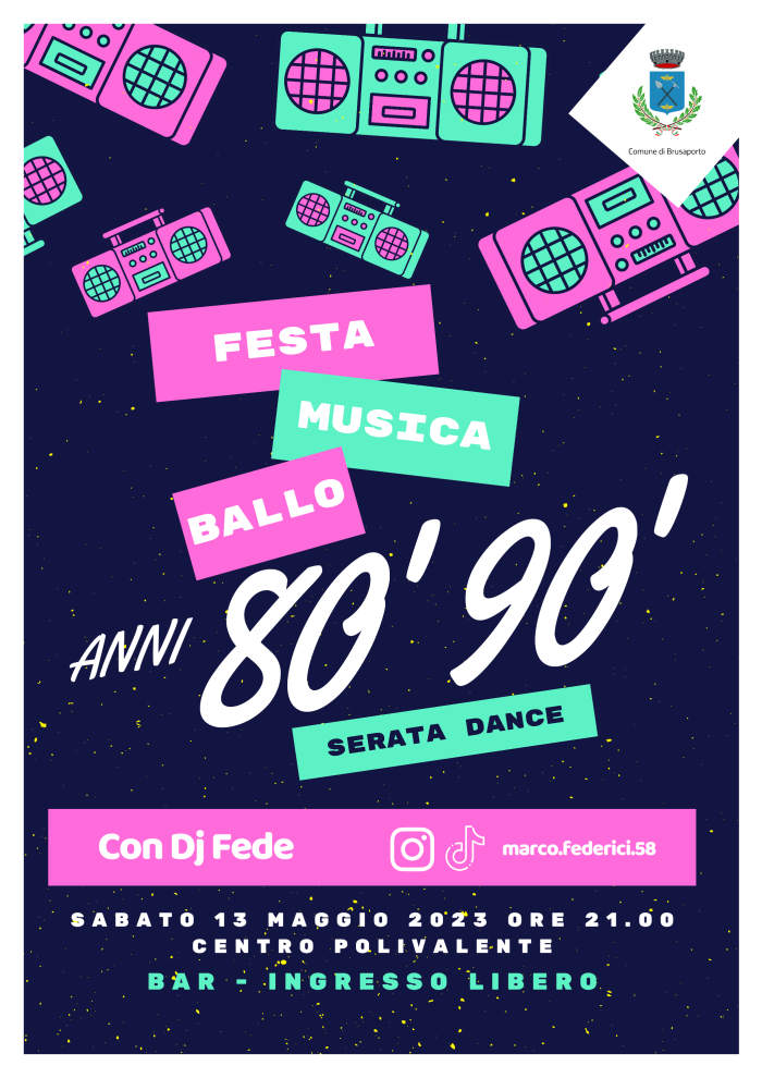 Una grande serata di musica vi aspetta, con le canzoni che vi hanno fatto ballare e cantare negli anni 80 e 90 con Dj Fede! Vi aspettiamo sabato 13 maggio 2023 alle ore 21.00 presso il Centro Polivalente. Ingresso libero e gratuito