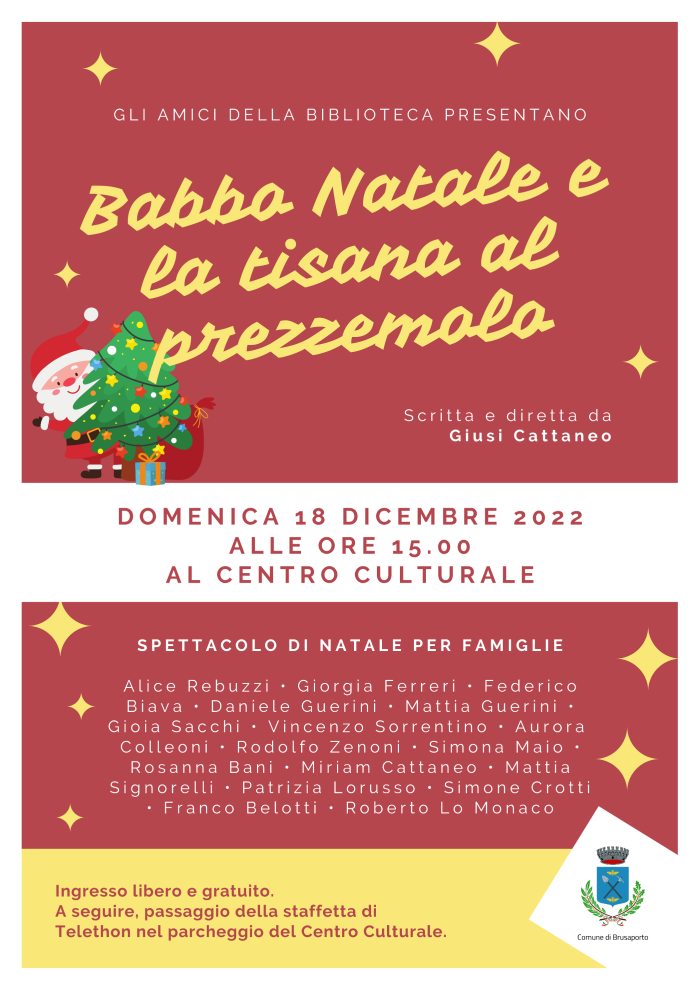 Gli "Amici della Biblioteca" presentano un nuovo spettacolo di Natale: domenica 18 dicembre 2022 alle ore 15.00 presso il Centro Culturale. Ingresso libero e gratuito.
