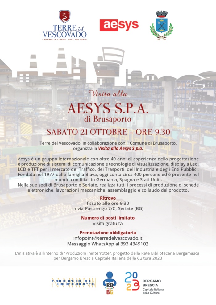 Terre del Vescovado, in collaborazione con il Comune di Brusaporto, organizza la Visita all'azienda Aesys S.p.a.